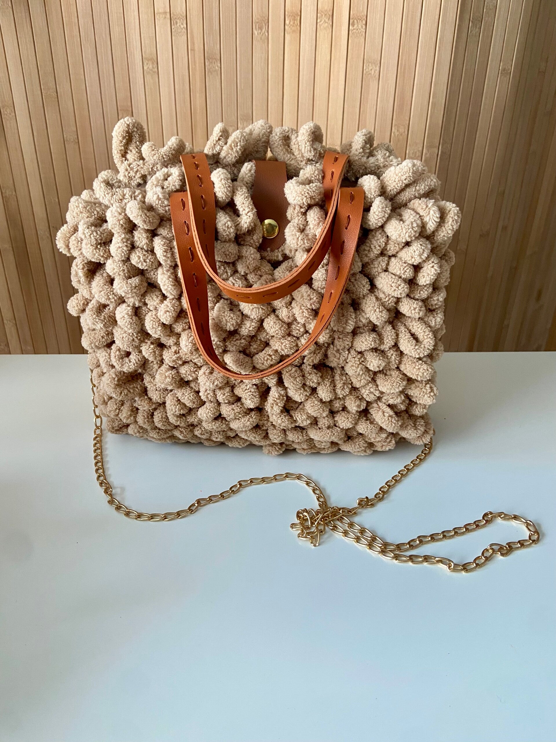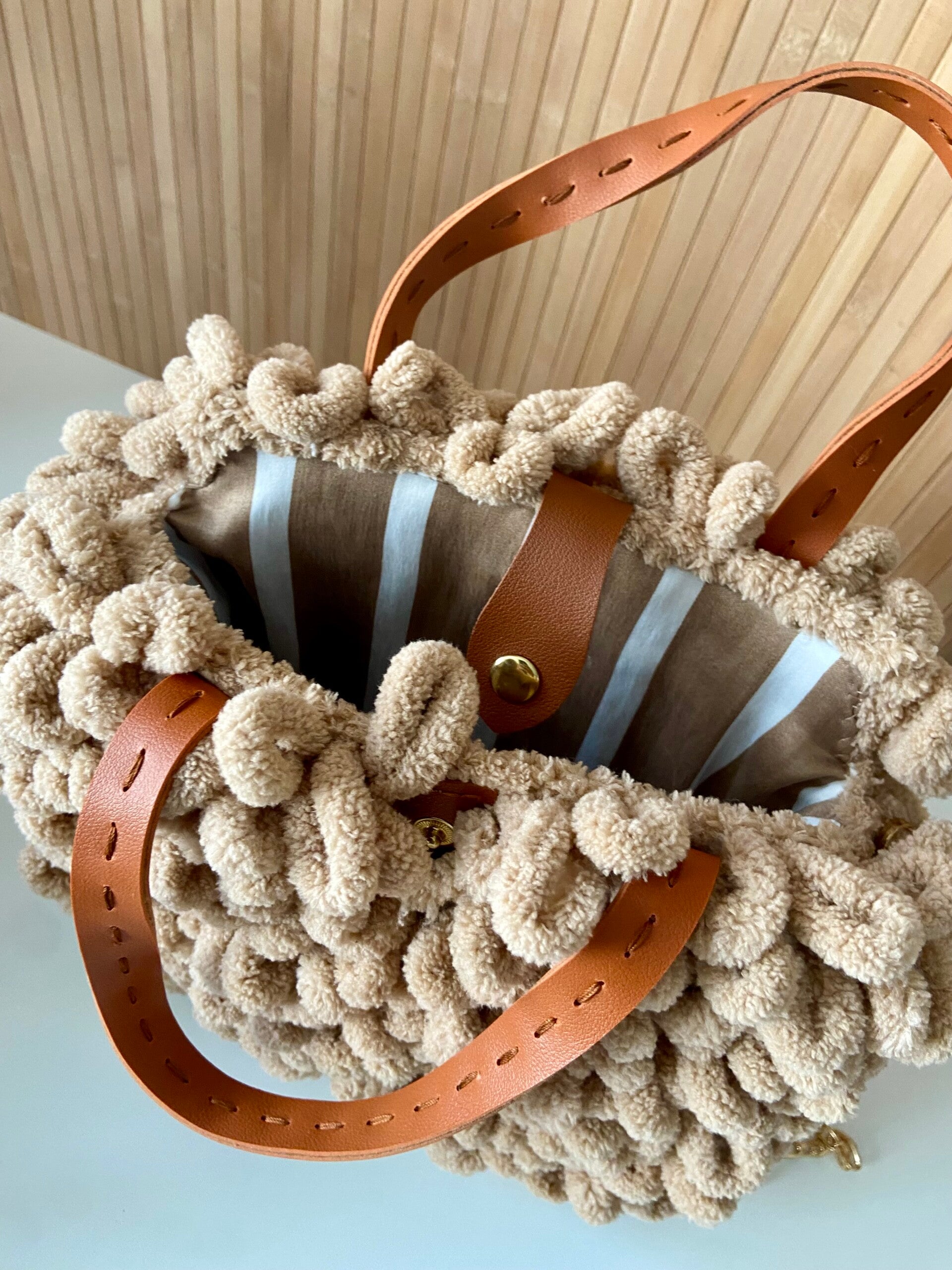Mooi handgemaakt tasje met leuke binnenvoering. Kan ook als schoudertas gebruikt worden. Perfect voor bij je nieuwe herfst/winteroutfit.